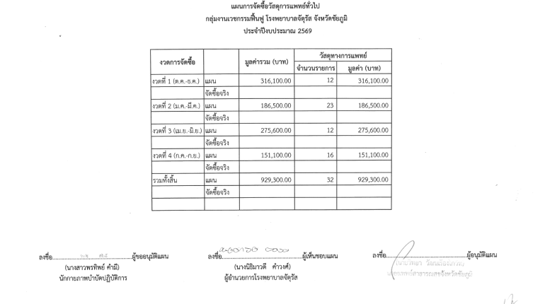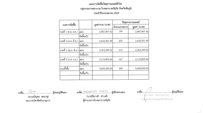 แผนการจัดซื้อ กลุ่มงานทันตกรรมโรงพยาบาลจัตุรัส จังหวัดชัยภูมิปีงบประมาณ 2569