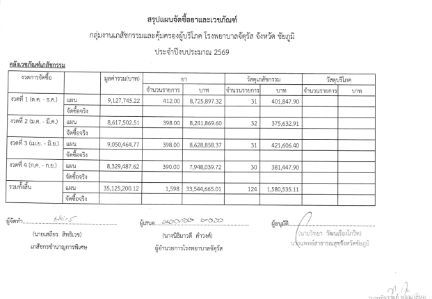แผนจัดซื้อยาและเวชภัณฑ์กลุ่มงานเภสัชกรรมและคุ้มครองผู้บริโภค โรงพยาบาลจัตุรัส จังหวัด ชัยภูมิประจำปีงบประมาณ 2569