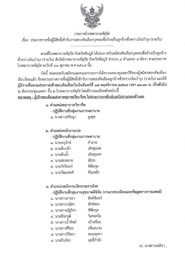 ประกาศรายชื่อผู้มีสิทธิเข้ารับการสอบคัดเลือกบุคคลเพื่อจ้างเป็นลูกจ้างชั่วคราวเงินบำรุง (รายวัน)
